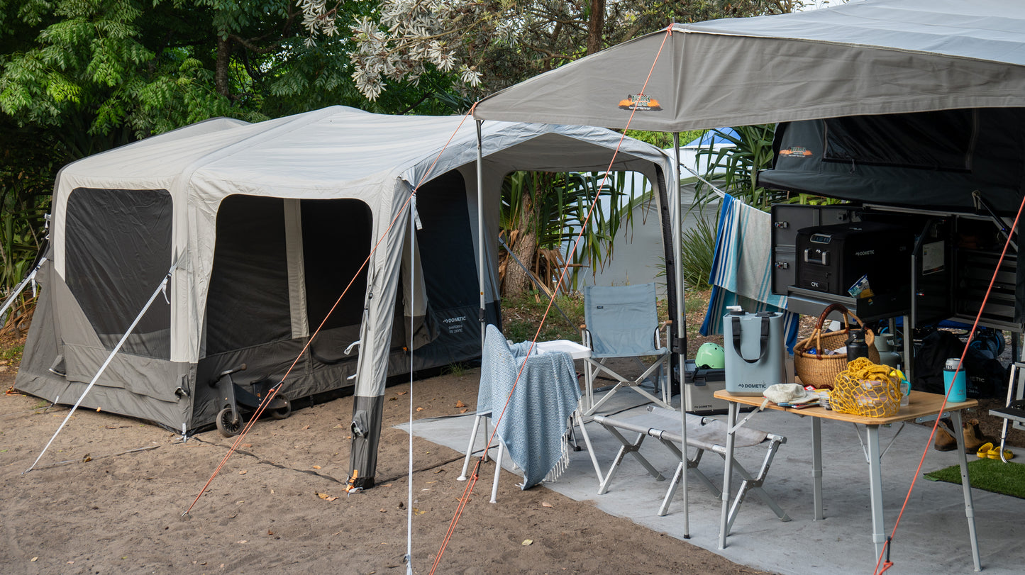 The ideal inflatable camping tent for couples and families alike, the Dometic Santorini FTK TC is constructed with advanced technical cotton material and features a large integrated canopy to ensure you remain sheltered, comfortable and dry throughout your camping trip. Sleep comfortably anywhere inside the tent, or clip in the option inner tent for added comfort and privacy. Zipped, bug-proof mesh panels on all sides of the tent provide maximum airflow control, reducing condensation and regulating the inner temperature.